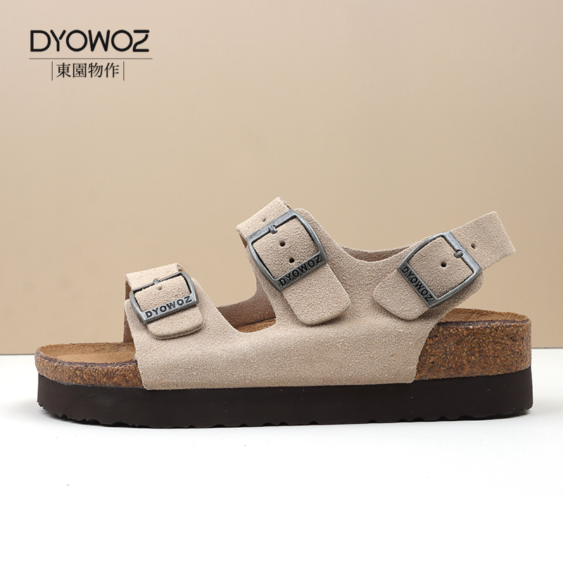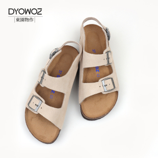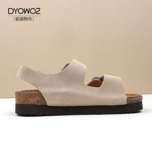 女厚底增高日系百搭真皮一字带凉鞋 DYOWOZ 东园物作勃肯软木凉鞋