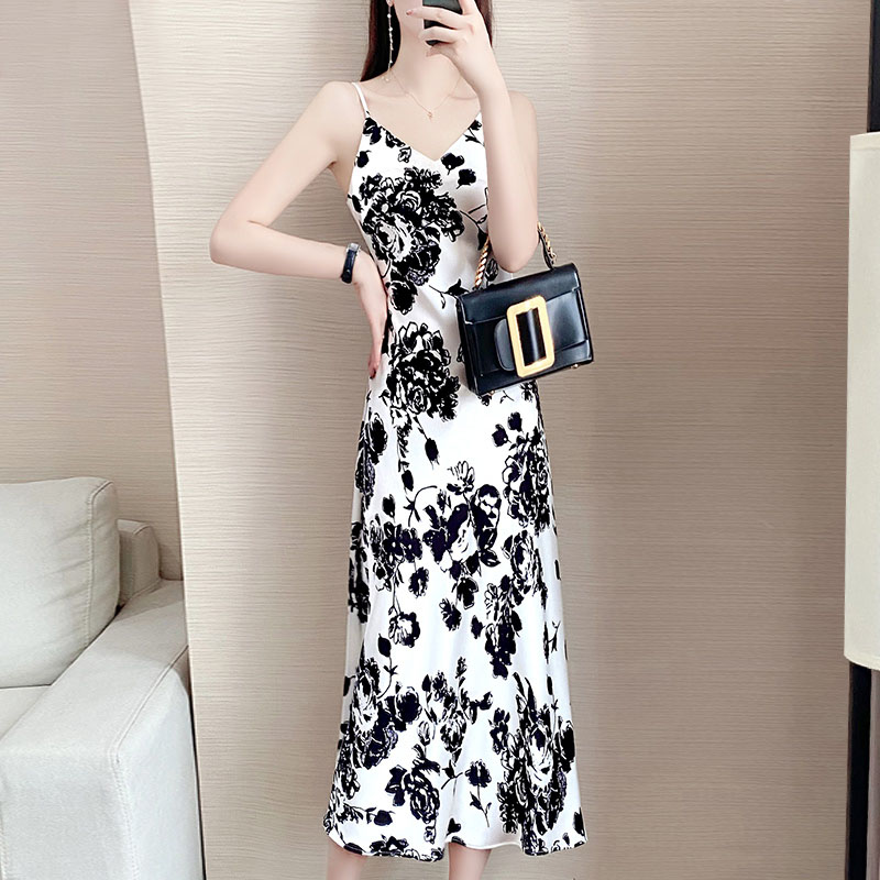 森马连衣裙女显瘦甜美度假风2025夏季 森系满印吊带裙浪漫文艺 新款
