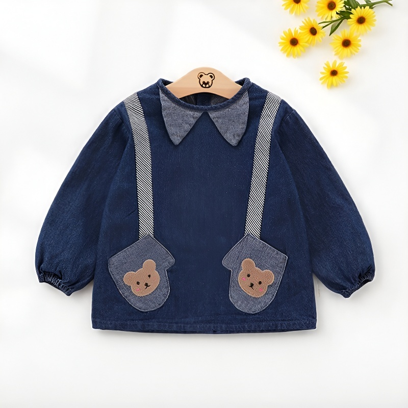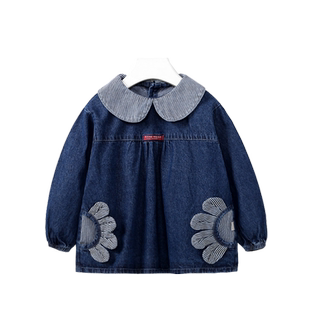 春秋冬牛仔反穿衣围衣吃饭兜画画外穿上衣女宝宝长袖 罩衣外套倒褂