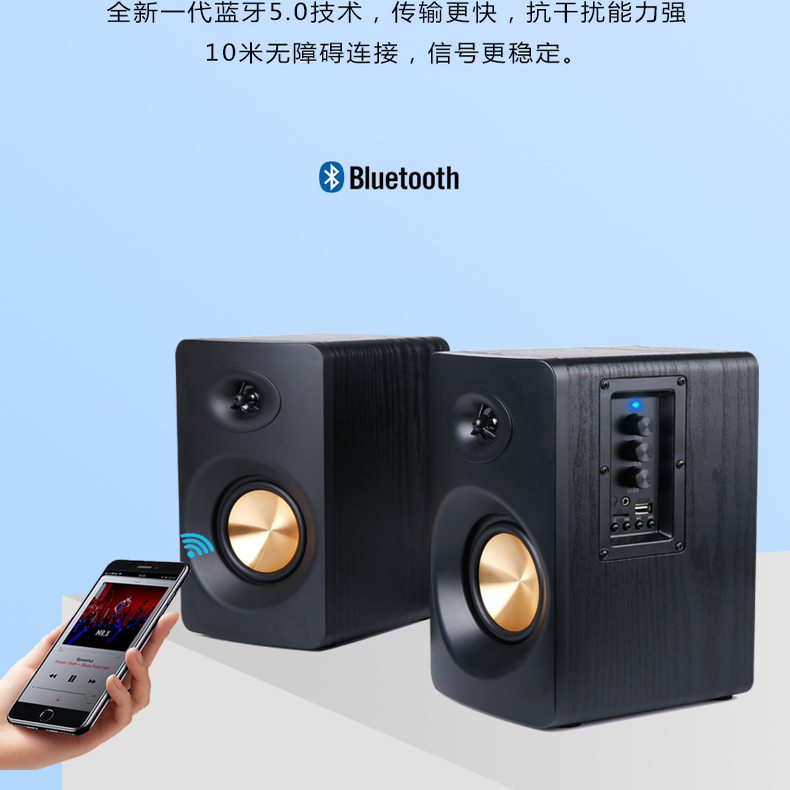 明硕电脑音响台式 2.0有源投影仪音箱家用木质蓝牙桌面笔记本