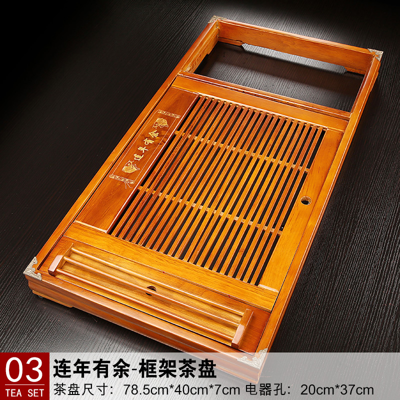 茶盘托盘长方形家用放茶杯干泡台日式 盘子内嵌泡茶办公室竹制排水