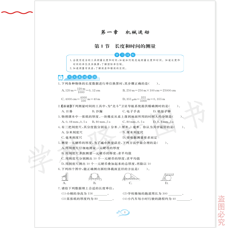 人教版 全优方案夯实与提高八年级上册物理A版 学林驿站初二8年级上册基础知识巩固能力培优提升中考模拟预测附参考答案 8物R 2025秋