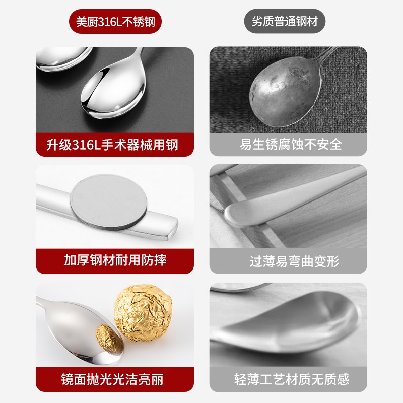 美厨316L不锈钢叉子餐叉水果叉餐具套装 家用汤勺长柄搅拌勺西餐叉