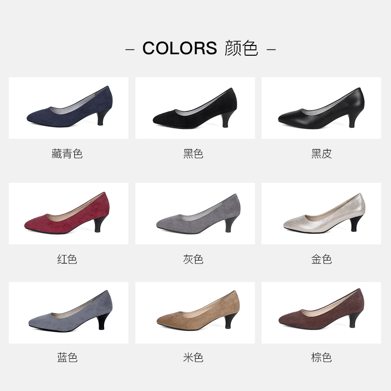 高跟鞋 女夏浅口气质细跟大码 不累脚 黑色通勤尖头绒面单鞋 ORTR女鞋