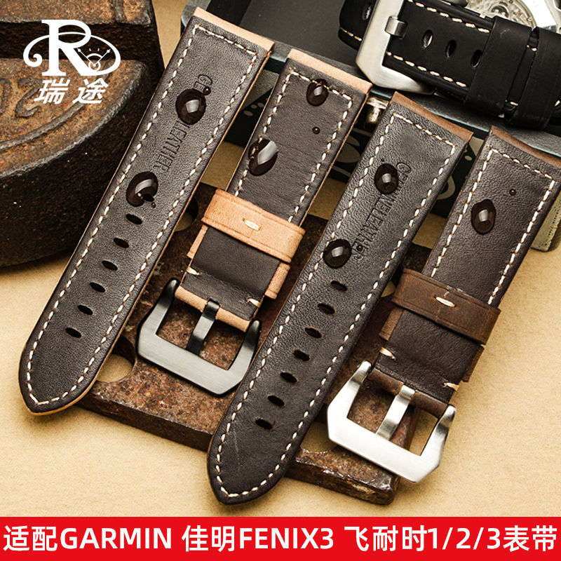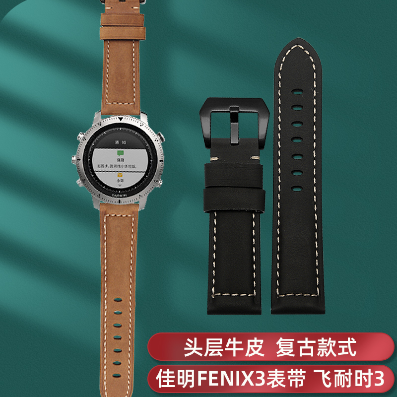 飞耐时5 适配佳明表带 3代真皮磨砂 5X复古手表带 fenix飞耐时1