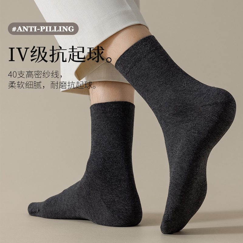 袜子男纯棉春秋款 中筒袜 短袜7a抗菌灰色无骨防臭脚吸汗青少年男士