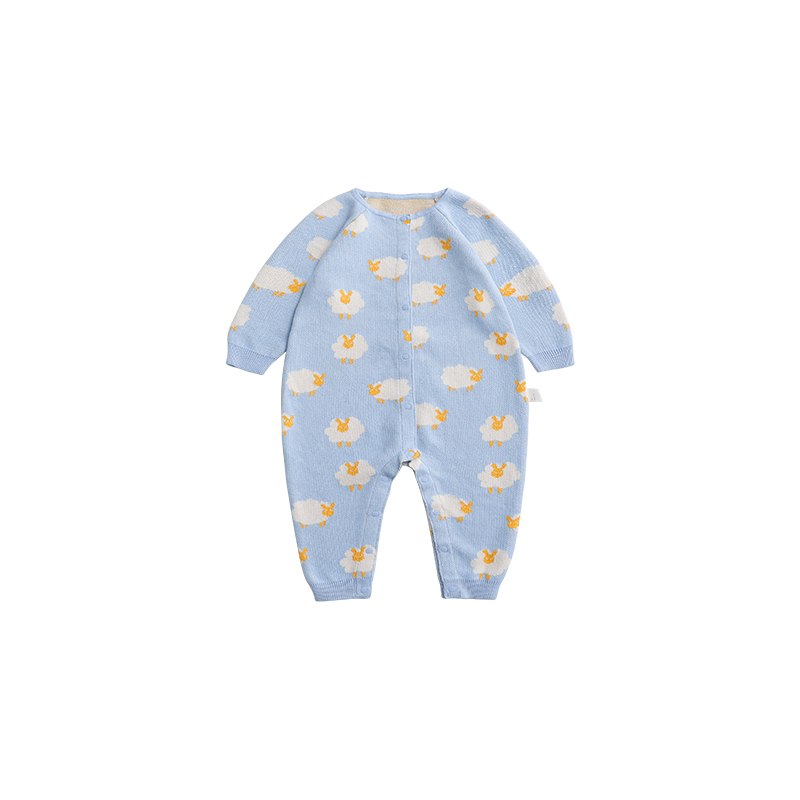 HM童装 圆领内着印花信封领棉质哈衣爬服1259195 男婴连身衣秋季