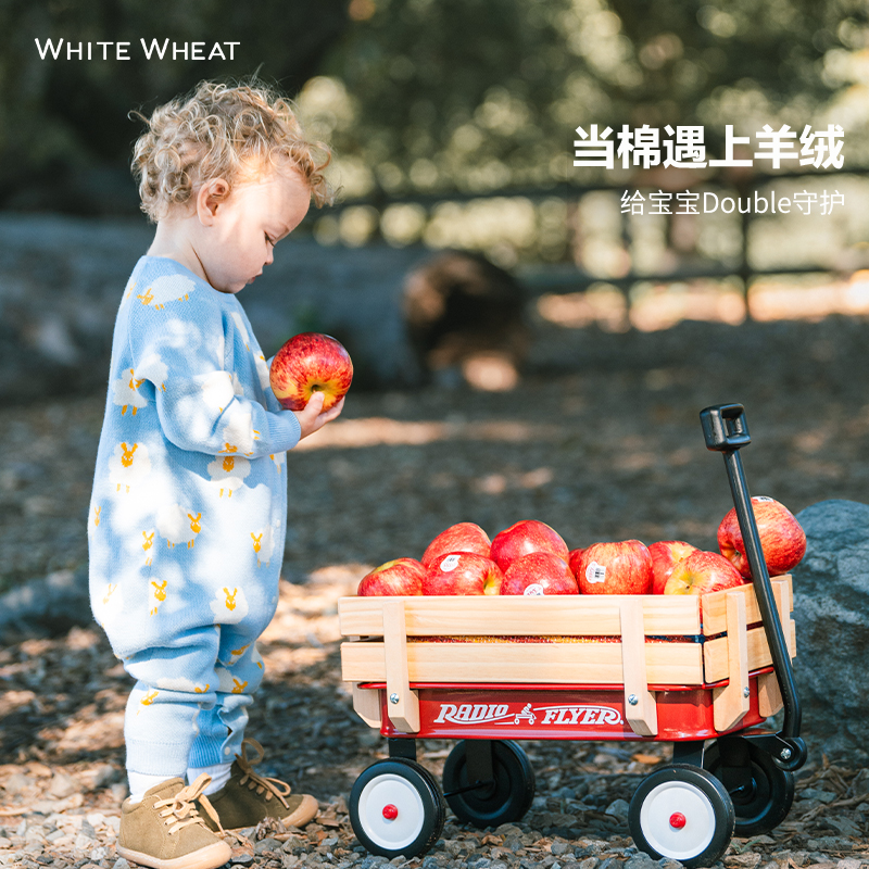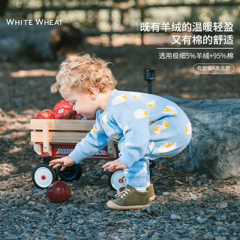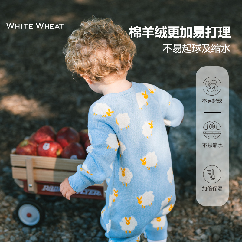 嫚熙婴儿连体衣山茶花华夫格宝宝衣服爬服哈衣秋冬外出连身衣
