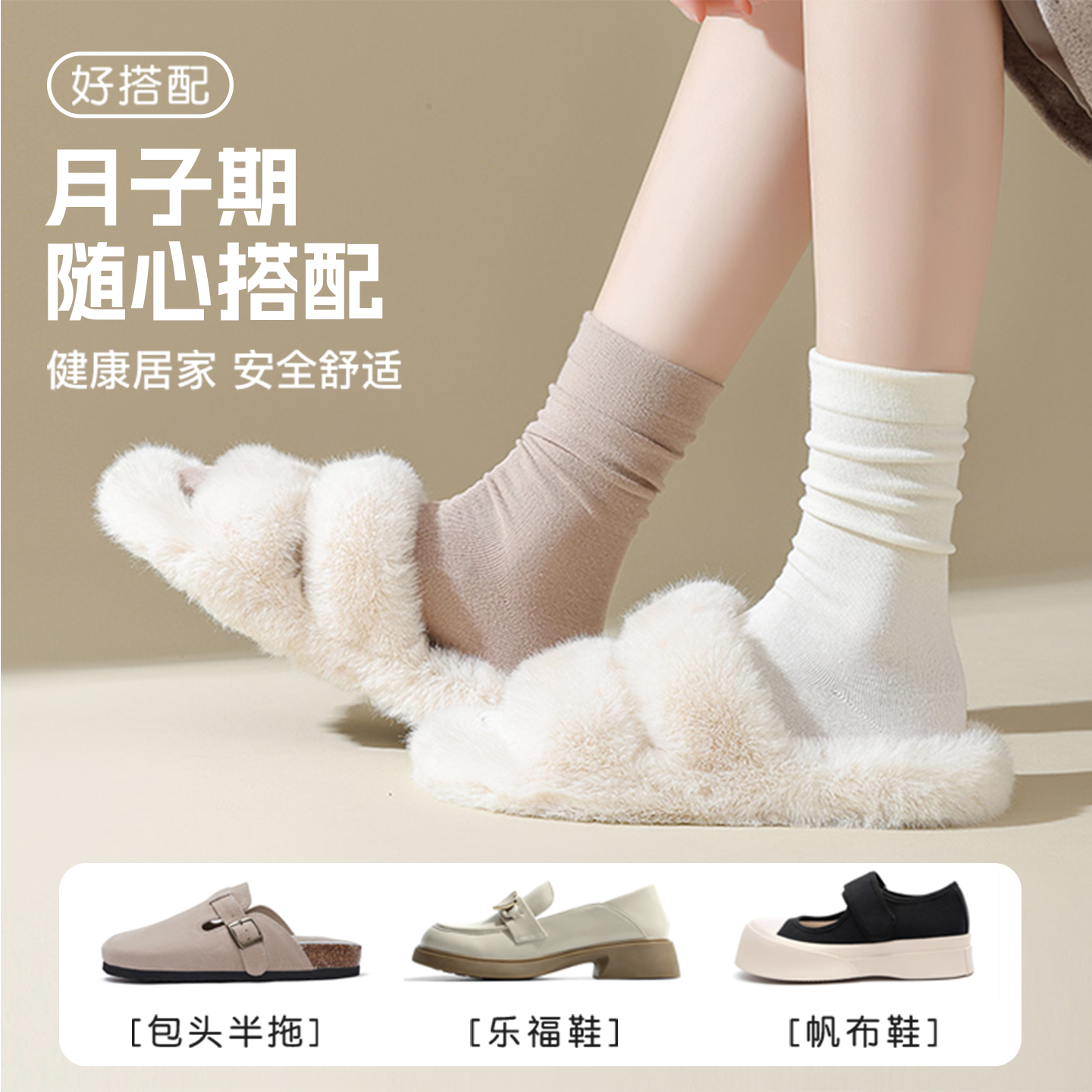 月子袜产后中筒 白色堆堆袜女士纯色防臭棉袜春秋款 袜子女夏季 薄款