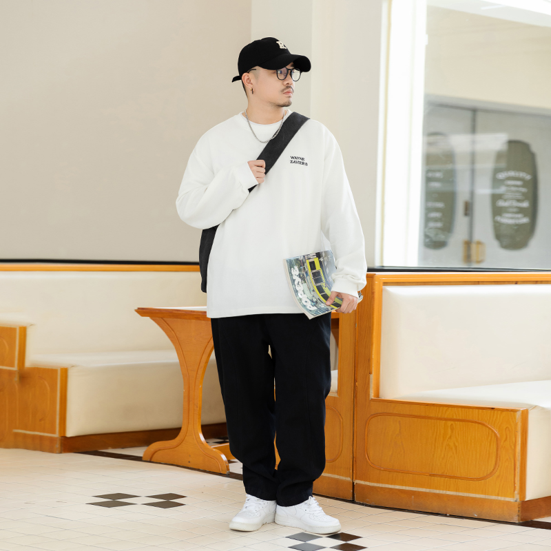 2025新款 春秋季 宽松潮牌圆领休闲百搭加肥胖子上衣服 卫衣男士 大码