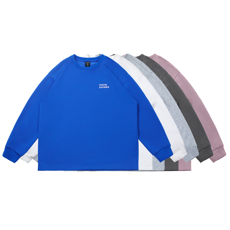 内搭宽松纯色白打底衫 t恤男秋冬季 加绒圆领卫衣 420G重磅长袖 美式