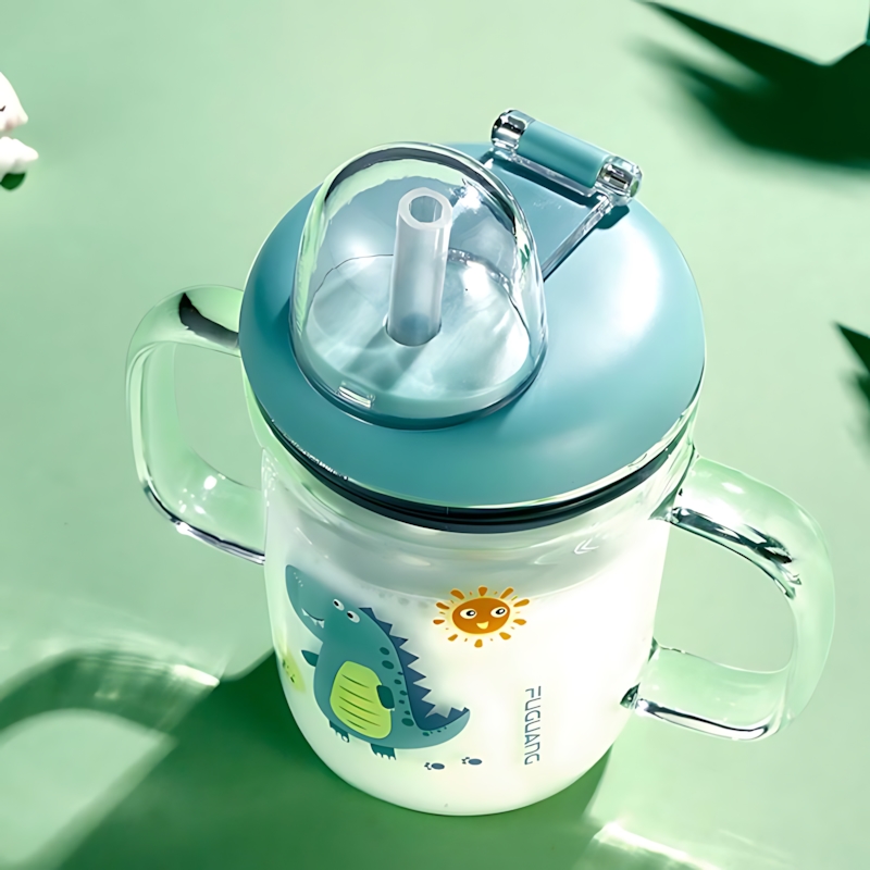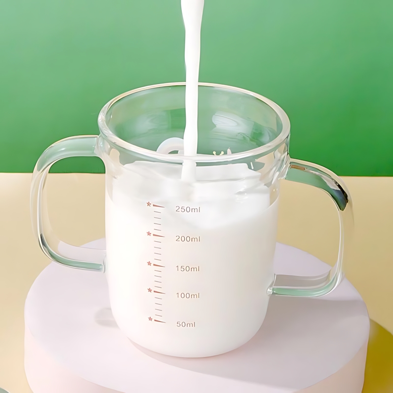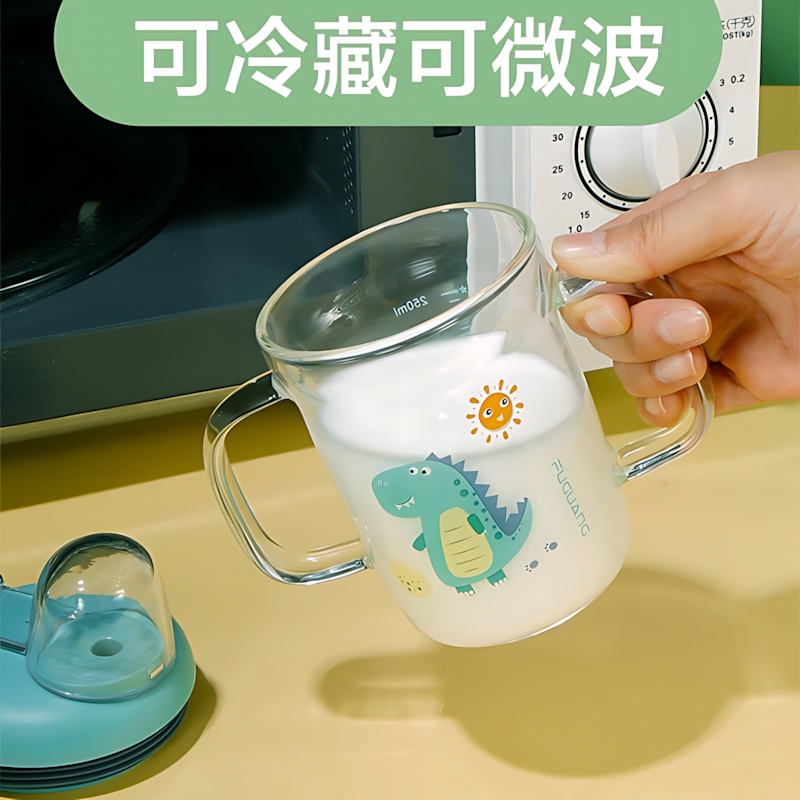 大宝宝喝奶杯3岁以上牛奶杯儿童带刻度喝水耐高温玻璃带吸管奶瓶