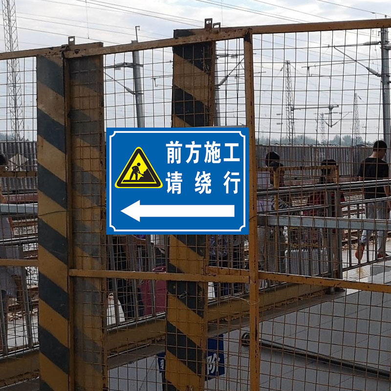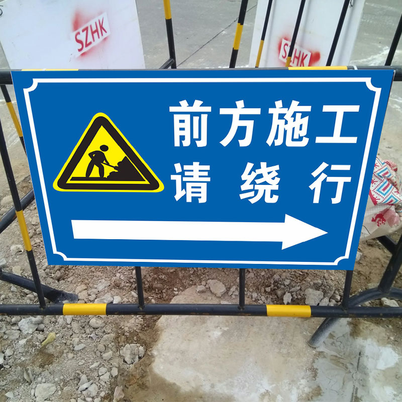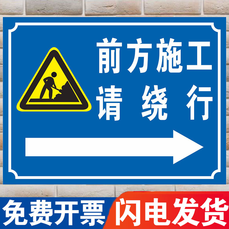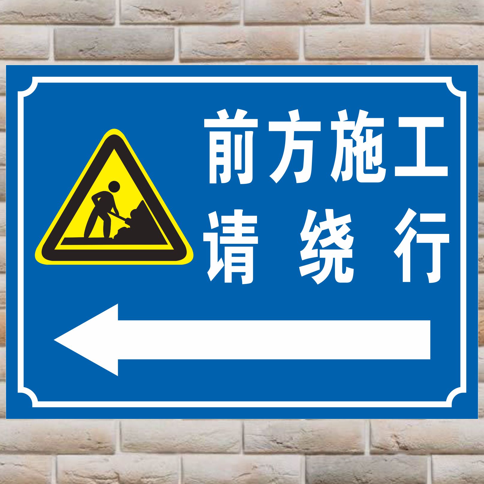 道路交通工地施工警示牌前方施工请绕行注意安全当心落物标识牌危险施工区域请向左右绕道通行箭头指示导向牌