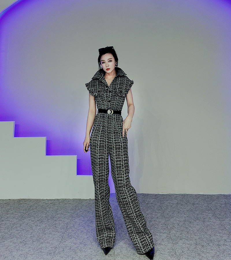 无袖 黑白连格子女装 新款 小香风洋气小众设计秋季 显瘦大气 连体裤