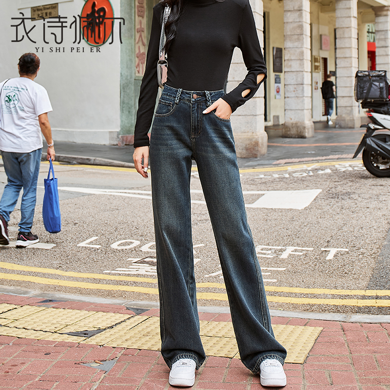 子 水泥灰垂感显瘦直筒裤 港风复古高腰阔腿牛仔裤 女2025年春秋新款