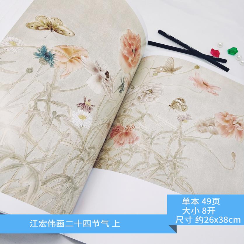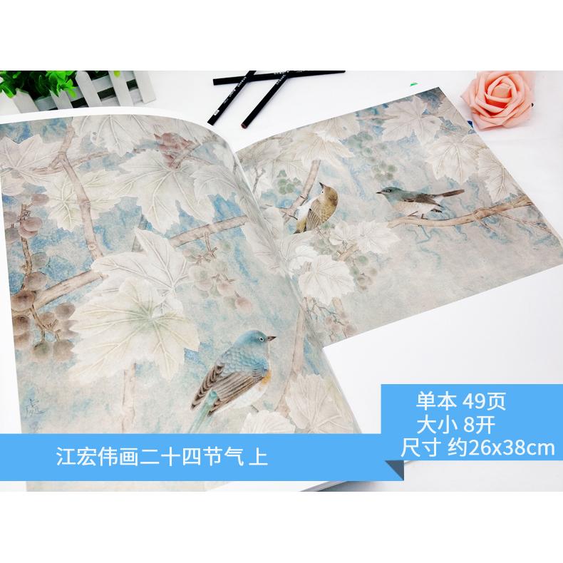 社 安徽美术出版 2本江宏伟画二十四节气上下册 中国画工笔花鸟临摹范本江宏伟工笔画集水墨国画技法教程白描工笔花鸟书籍