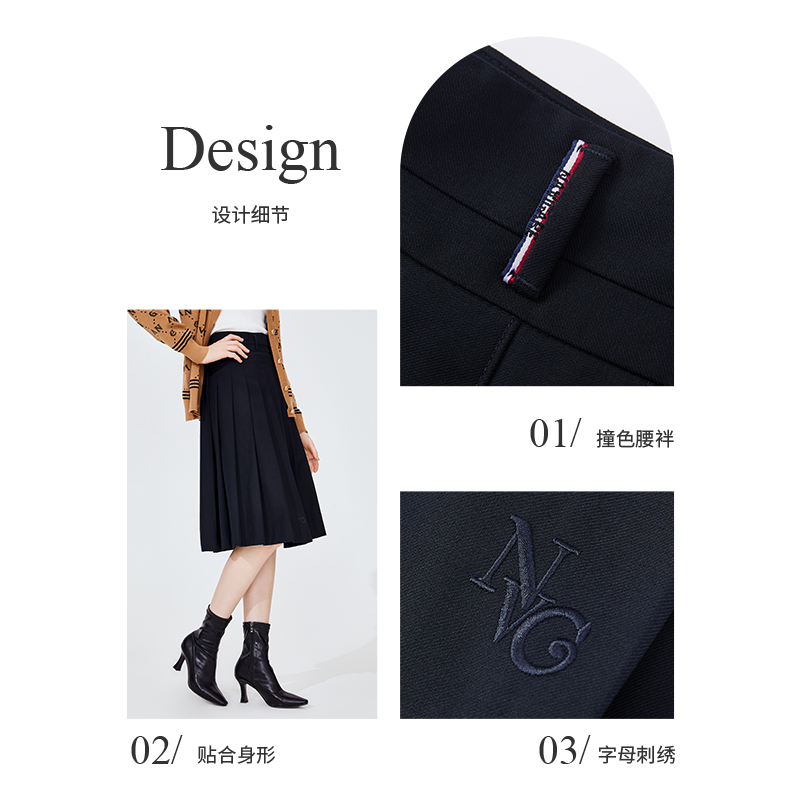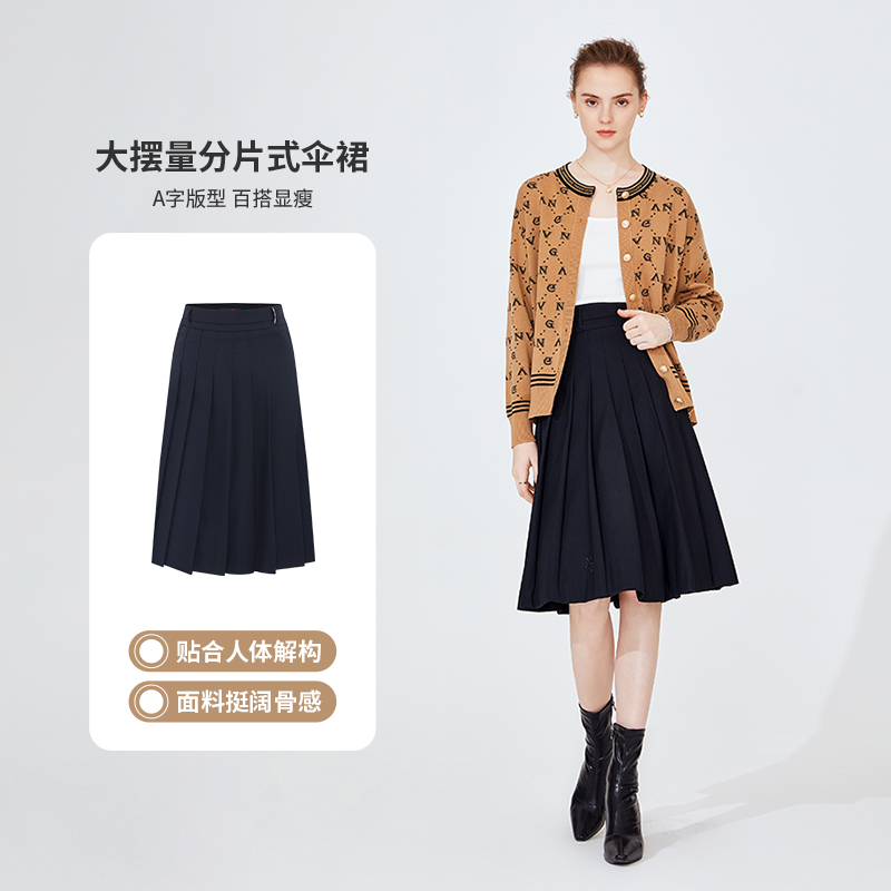 班尼路百褶半身裙女2025秋新款 小个子高腰显瘦学院风中长裙A字裙Q