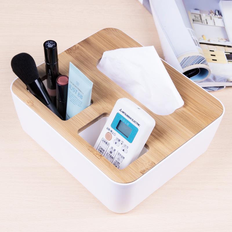简约北欧风实木创意桌面遥控器化妆品纸巾收纳盒木盖创意卷纸盒
