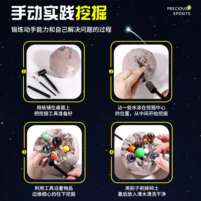 儿童考古挖掘玩具男孩女孩八星球挖宝石矿石盲盒宝藏寻宝石膏