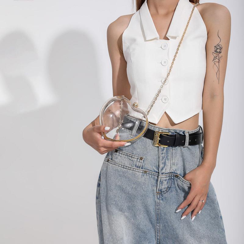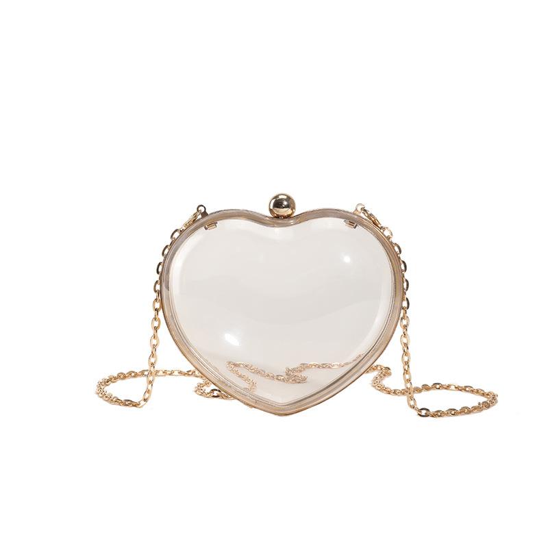 韩国同款 PVC透明壳外出搭配口红包 网红斜挎包小众爱心链条单肩包