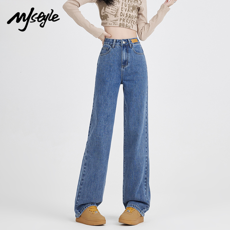 女刺绣高腰显瘦直筒长裤 BANANA 复古牛仔裤 美式 BABY2025年秋新款