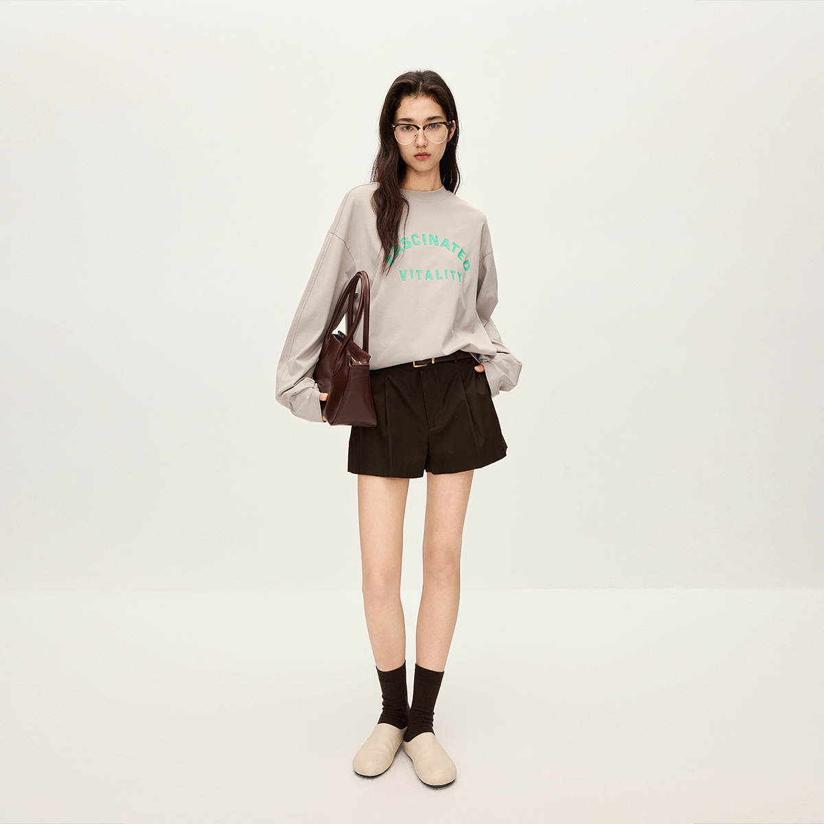 秋冬新品 t恤女宽松中长休闲时尚 字母印花长袖 OCHIRLY欧时力