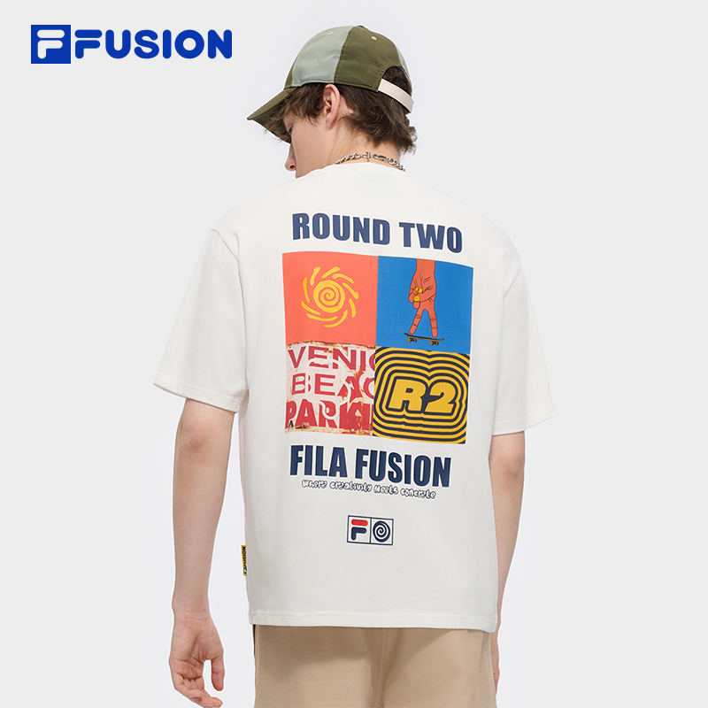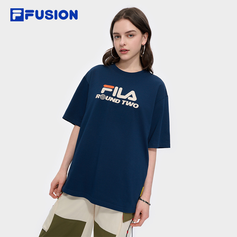 FUSION斐乐潮牌情侣款 时尚 针织短袖 2025夏新款 休闲宽松T恤 衫 FILA