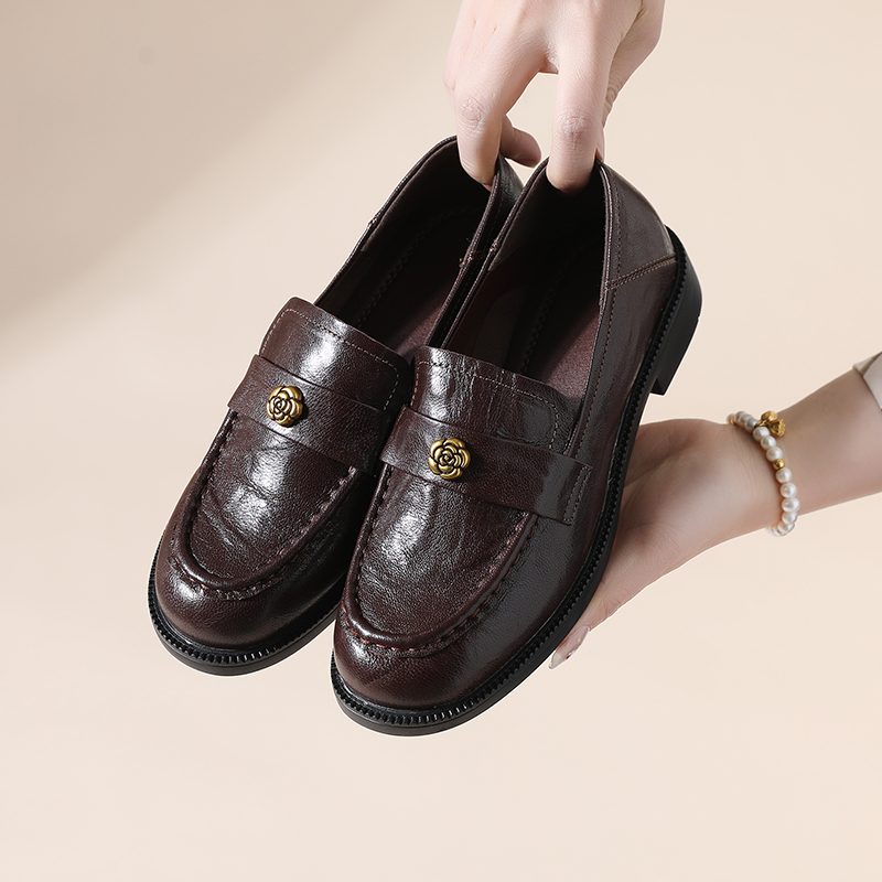 女鞋 英伦风一脚蹬单鞋 41一43 女2025春秋新款 超软羊皮山茶花乐福鞋