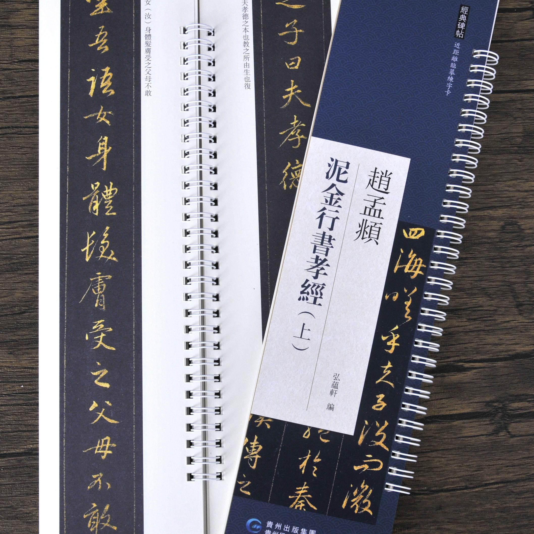 近距离经典 弘蕴轩 泥金行书孝经上下两册 赵孟頫 碑帖临摹练字卡原色原帖繁体旁注赵体行书字卡临摹范本成人学生临本毛笔 共2本