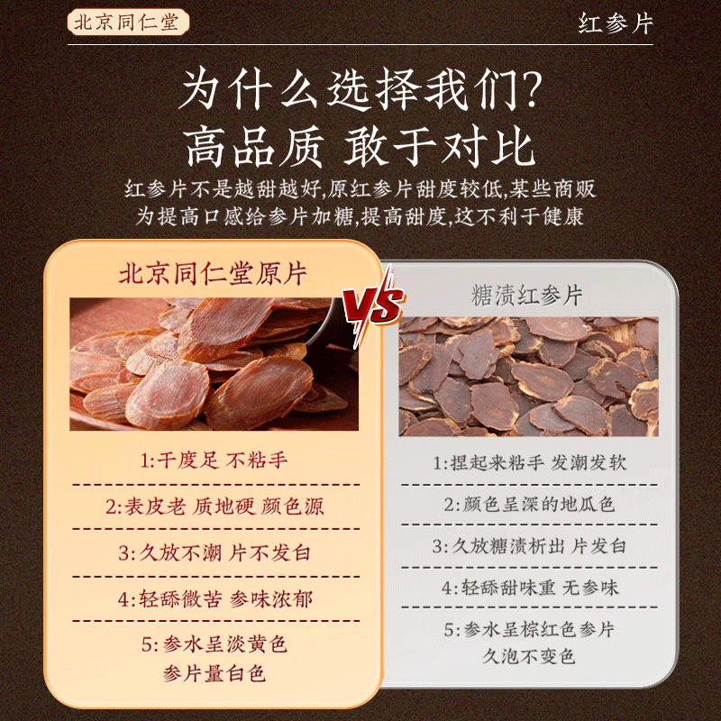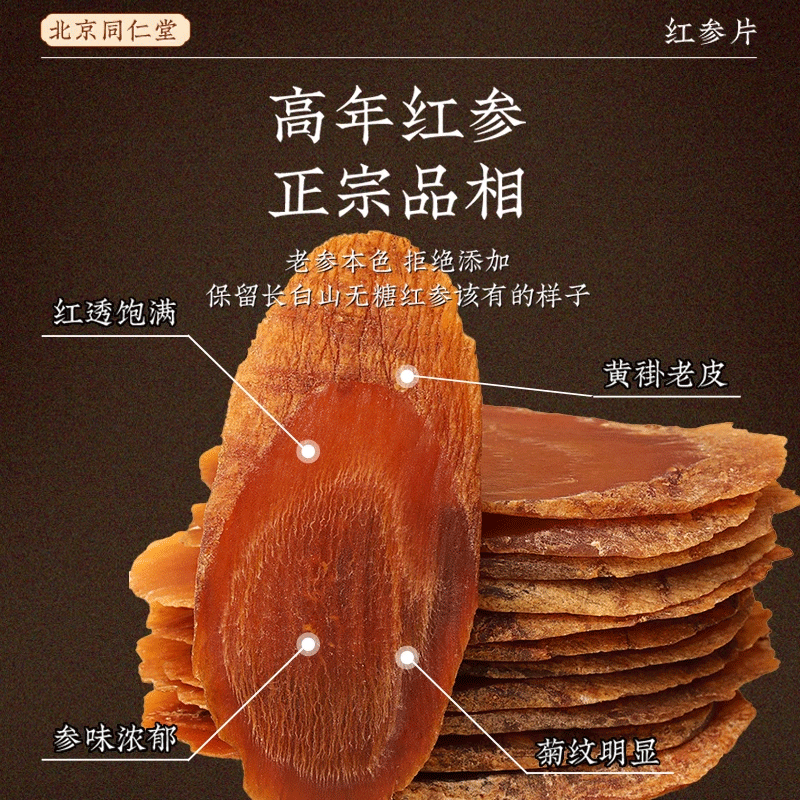 北京同仁堂红参片官方旗舰店正品 长白山人参无糖高丽参干非中薬材