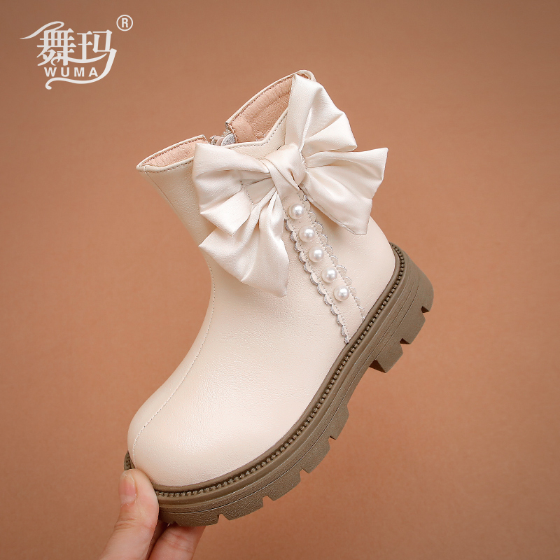 小女孩童靴女宝宝二棉鞋 女童靴子儿童真皮公主马丁靴2025新款 秋季