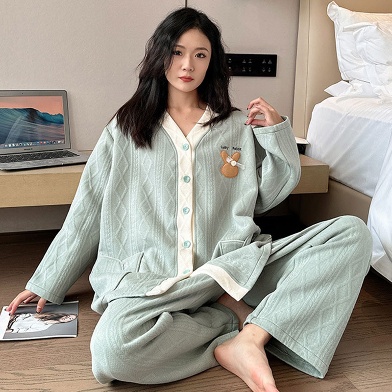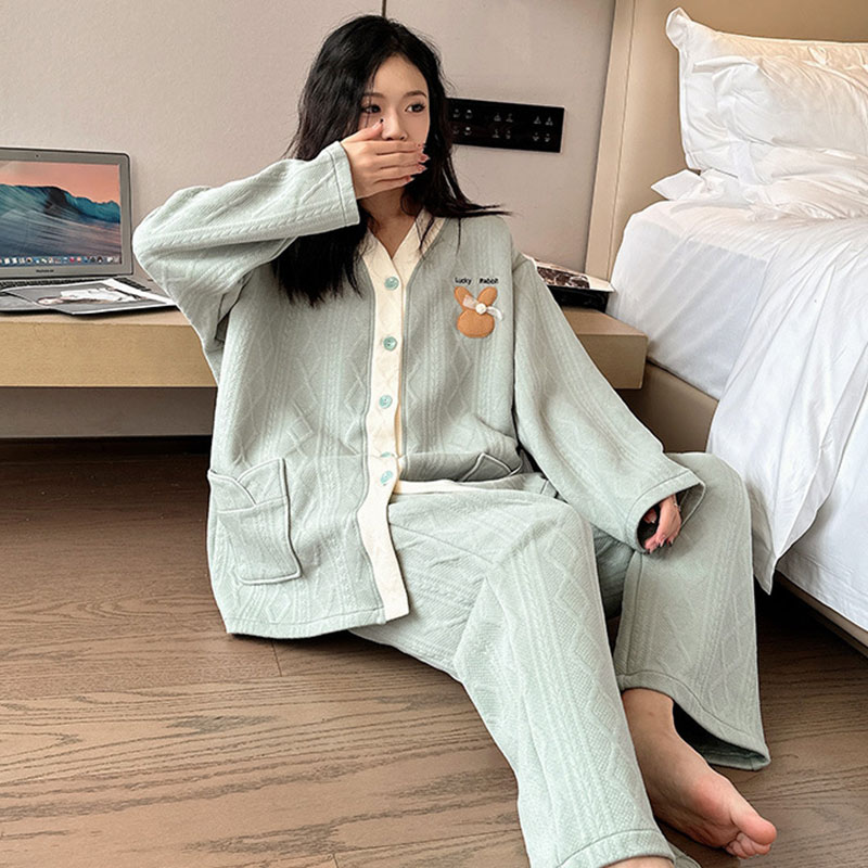 睡衣套装 纯棉春秋季 少女长袖 全棉高级感开衫 家居服 春秋款 芬腾新款