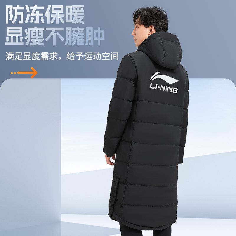棉服官方保暖上衣连帽运动外套 鸭绒长款 李宁火锅羽绒服 女冬季