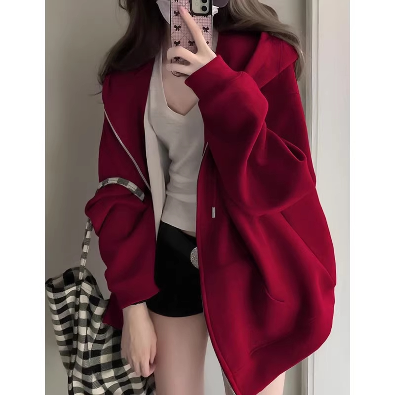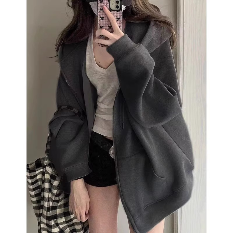 开衫 上衣小个子韩系慵懒风薄款 拉链外套 春秋季 连帽卫衣女2025新款