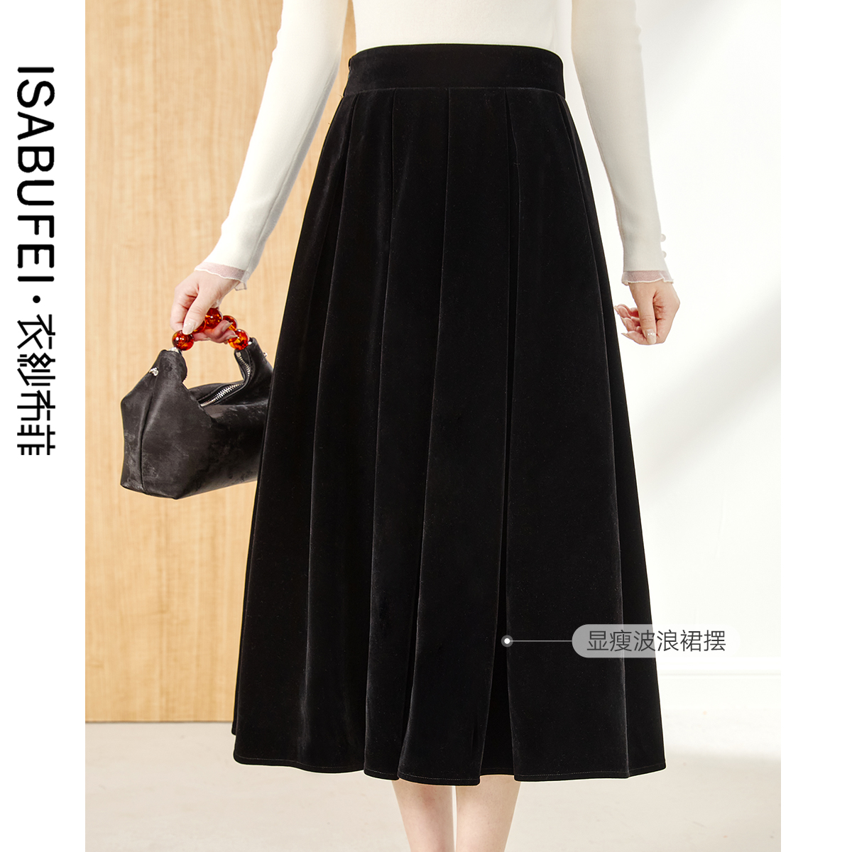 珂莱蒂尔2025秋新简约易搭丝绒半身裙子女中长裙 免定金