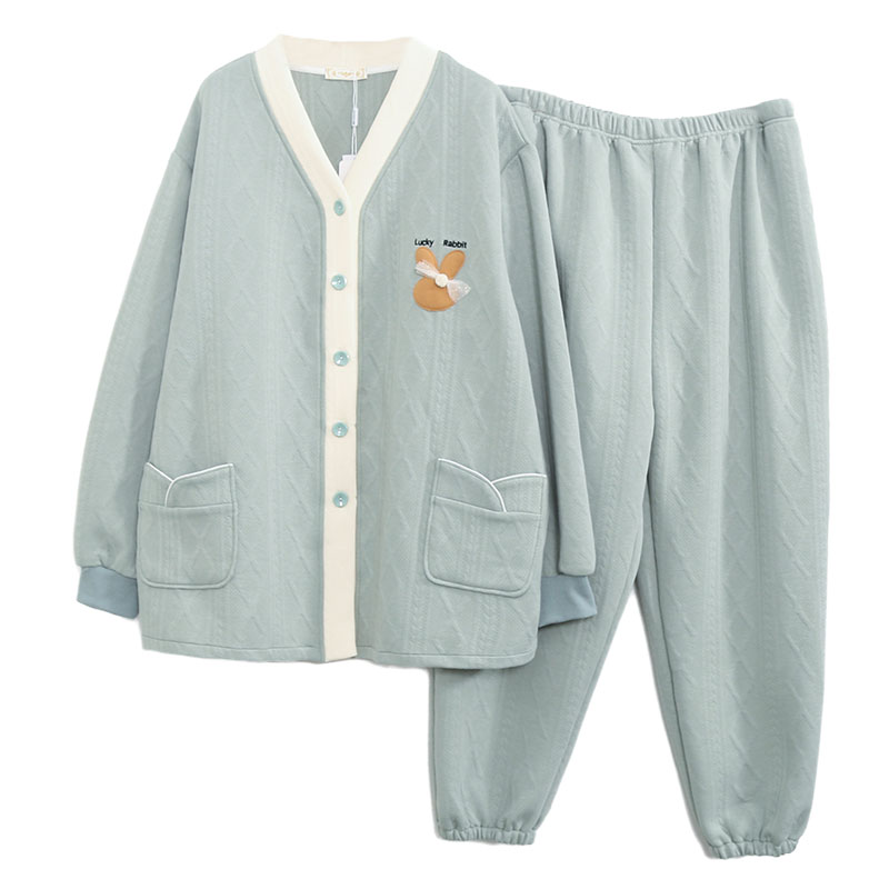 可外穿女士甜美绣花可爱法兰绒家居服加厚宽松大码 珊瑚绒睡衣套装