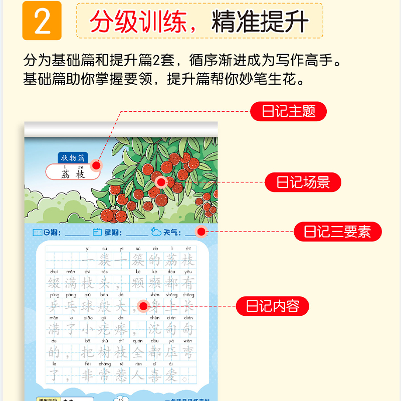 小学一句话日记练字帖 提高篇语文专项训练RJ 全套8册一二三年级上下册小学生日记大全作文起步入门记事描景写人状物基础篇