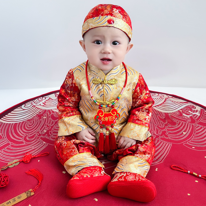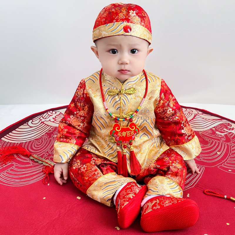 抓周服周岁礼服男宝宝中国风新款 婴儿百天一岁抓周生日宴会服套装