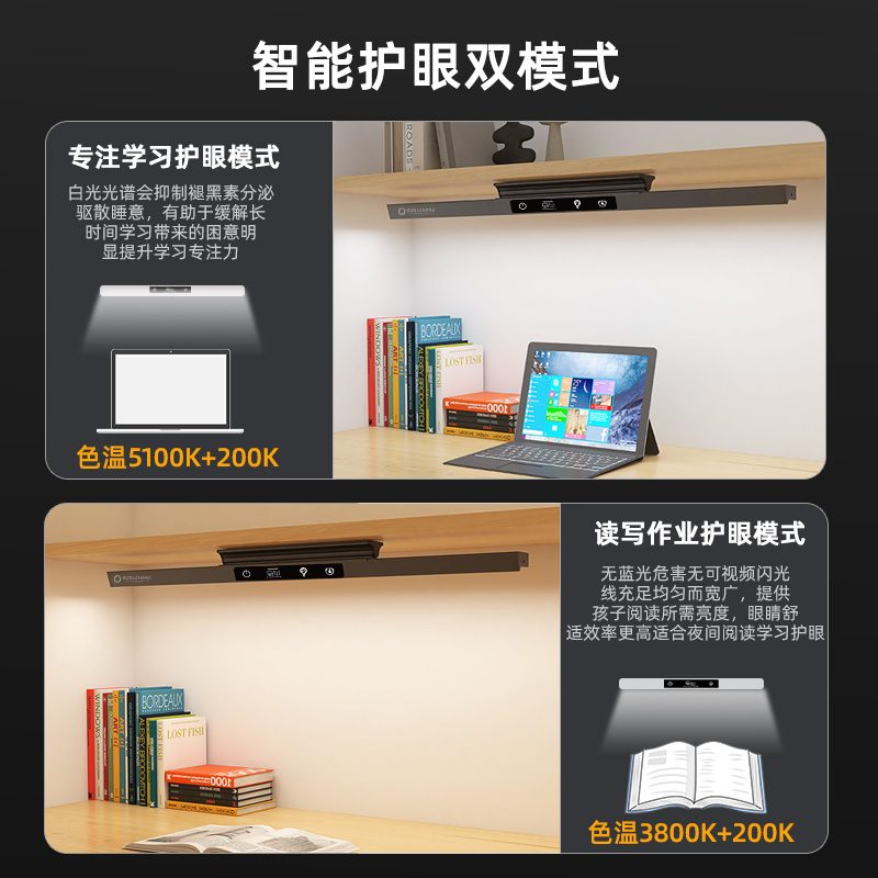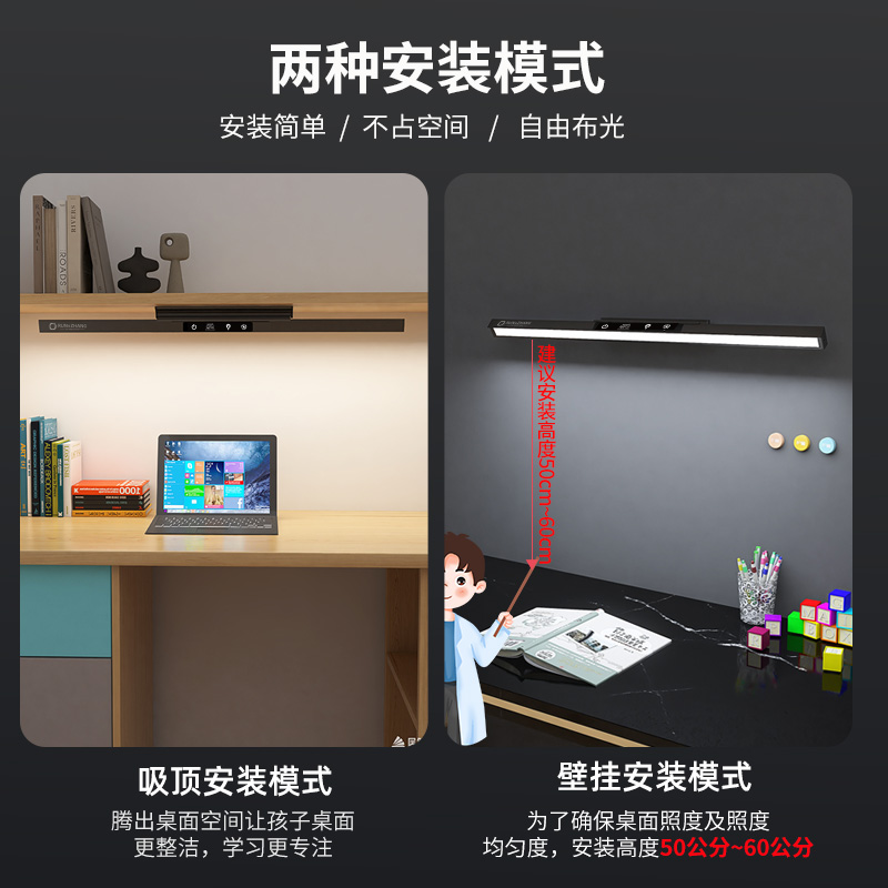 润章护眼灯全光谱台灯壁挂式 学习专用儿童学生写字阅读屏幕书桌灯