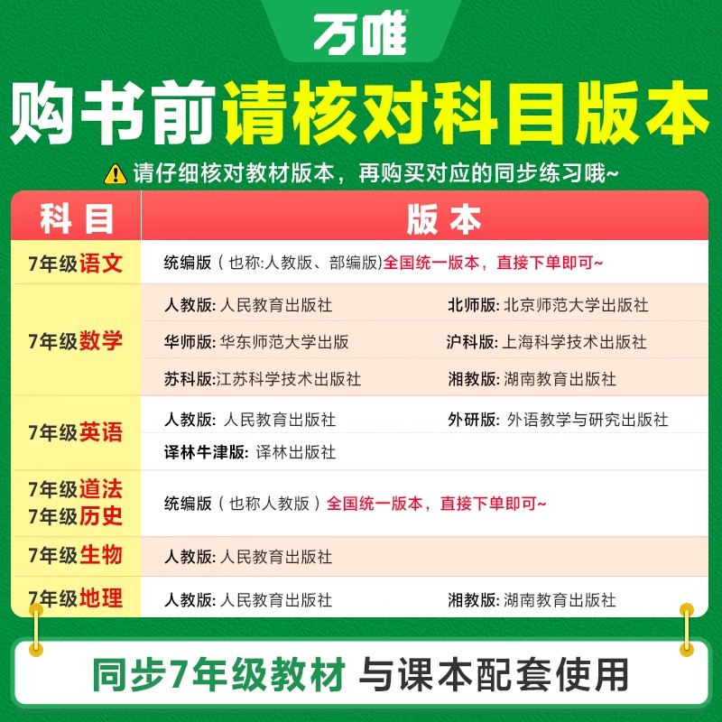 2026万唯七年级上册数学情境题语文英语政治历史地理生物小四门人教版 7万维中考初一同步训练练习册必刷题 北师华师沪科苏科湘教版