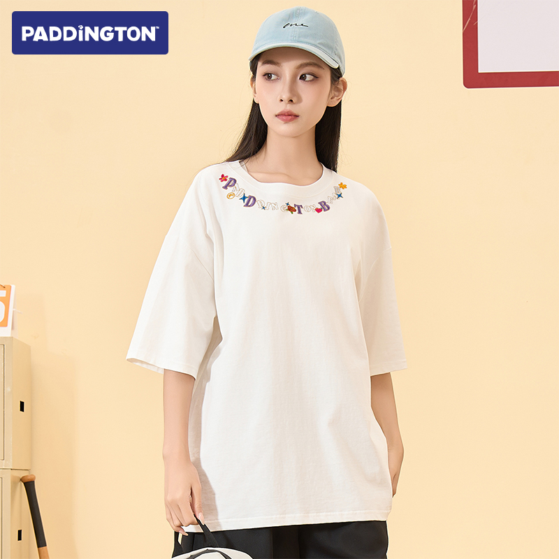男女同款 项链字母刺绣T恤休闲宽松重磅短袖 夏季 帕丁顿熊2025新款
