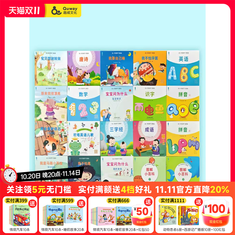 20册涵盖拼音数学英语古诗三字经等听觉和视觉共同 幼小衔接学习套装 呵护启蒙教育学前绘本 趣威文化点读版