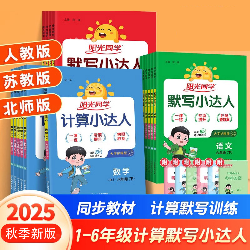 2025秋阳光同学默写计算小达人一二三四五六年级上册语文数学英语