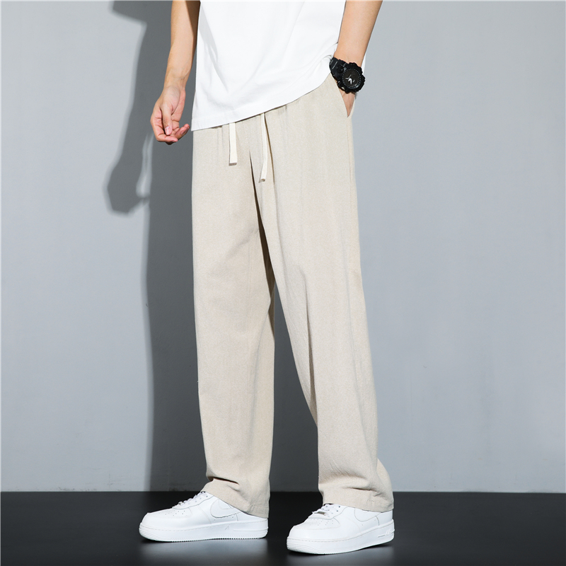 亚麻裤 日系纯棉萝卜裤 男士 棉麻裤 宽松直筒长裤 男裤 休闲裤 子男夏季