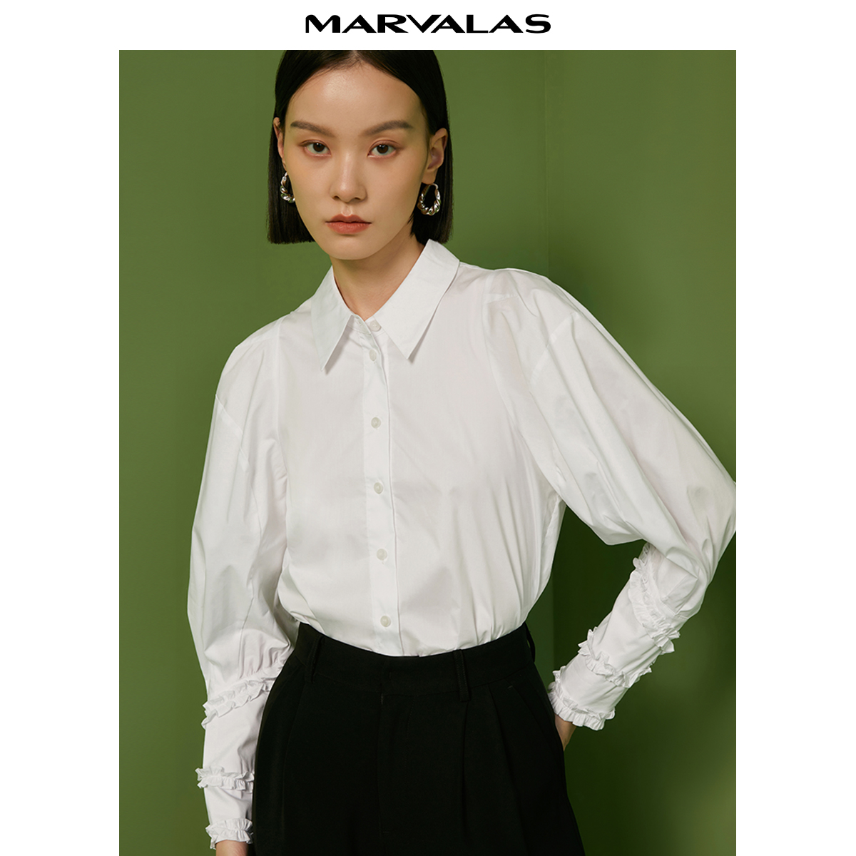 韩系氛围感穿搭衬衣chic上衣 法式 曼德诗设计感白色衬衫 女2025秋装