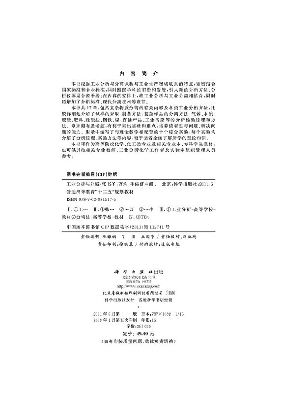 科学出版 社 张书圣 牛淑妍 工业分析与分离 万均 9787030315175书籍KX 京联