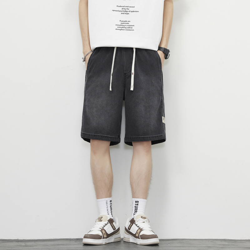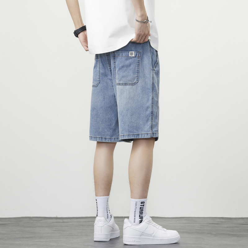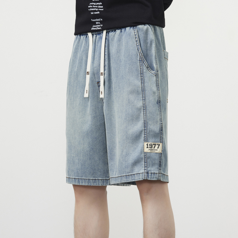 宽松直筒五分裤 休闲百搭中裤 子 男透气外穿薄款 浅蓝色渐变牛仔短裤
