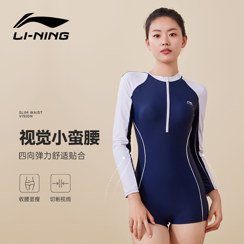 泡温泉泳装 李宁游泳衣女2025新款 专业游泳馆专用连体平角保守大码