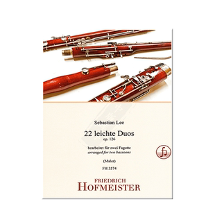 22首 FH3574 bassoons Sebastian 李 二重奏 Lee 大管 op126 Duos 塞巴斯蒂安 霍夫曼斯特原版 leichte 乐谱书