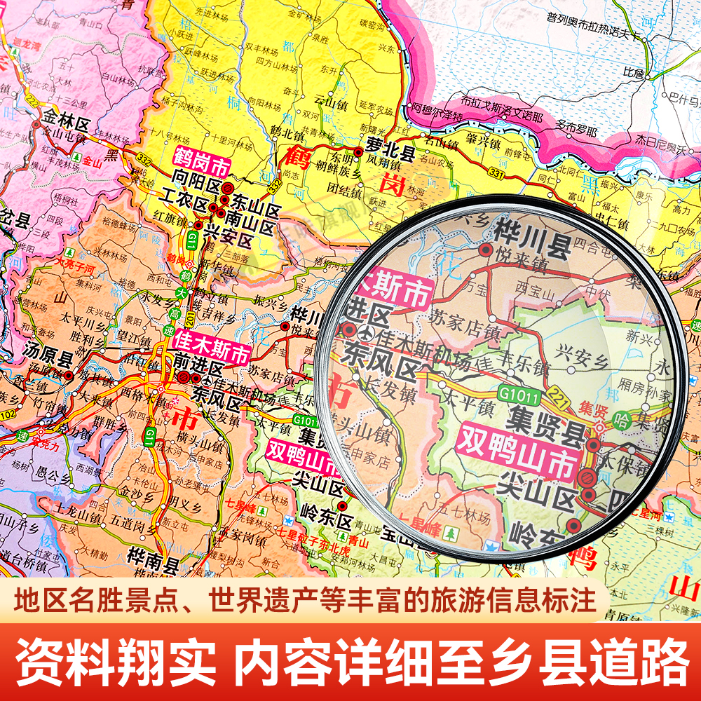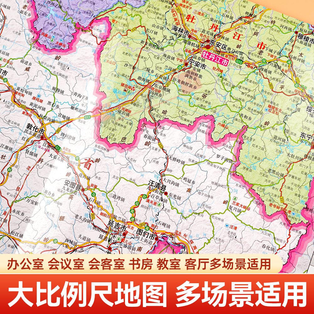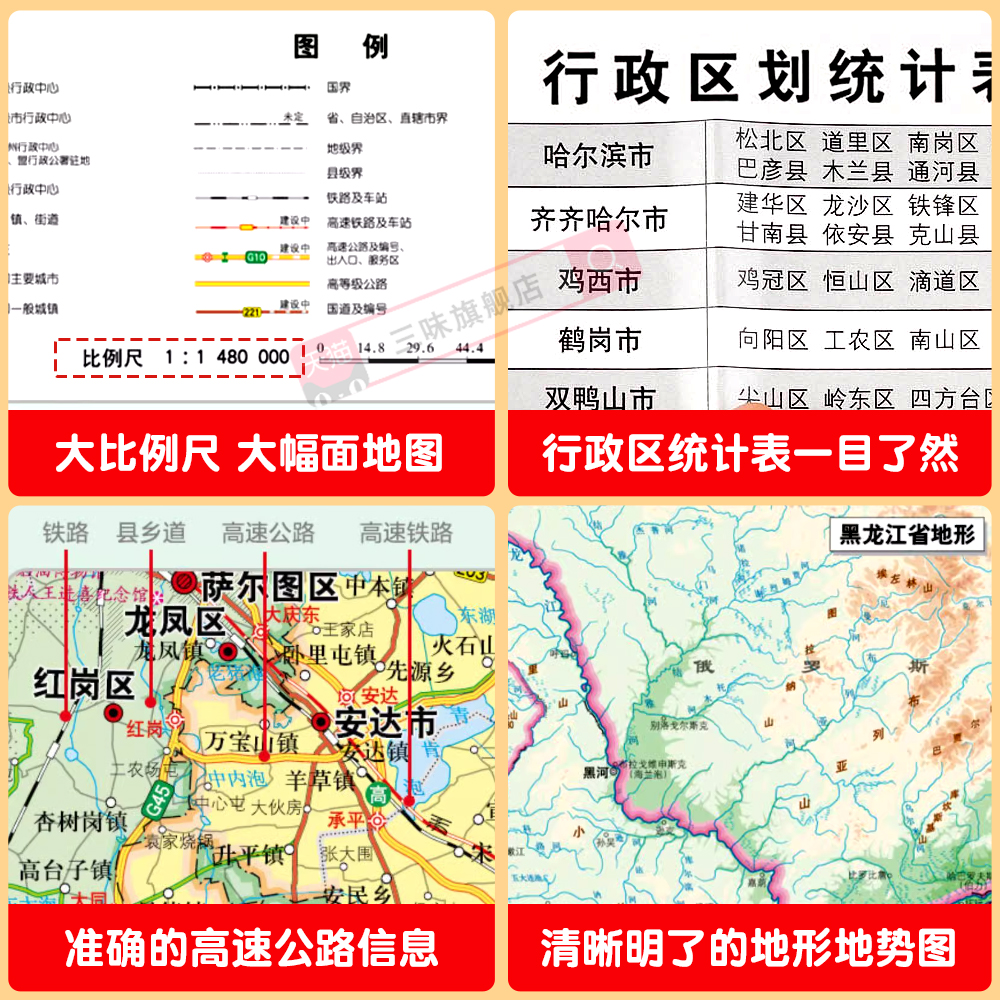2025年新版 黑龙江省地图 覆膜耐折约1.1米中国地图 饰画挂画墙贴文化墙面装 社 政区交通图中图社分省系列纸图装 饰 中国地图出版